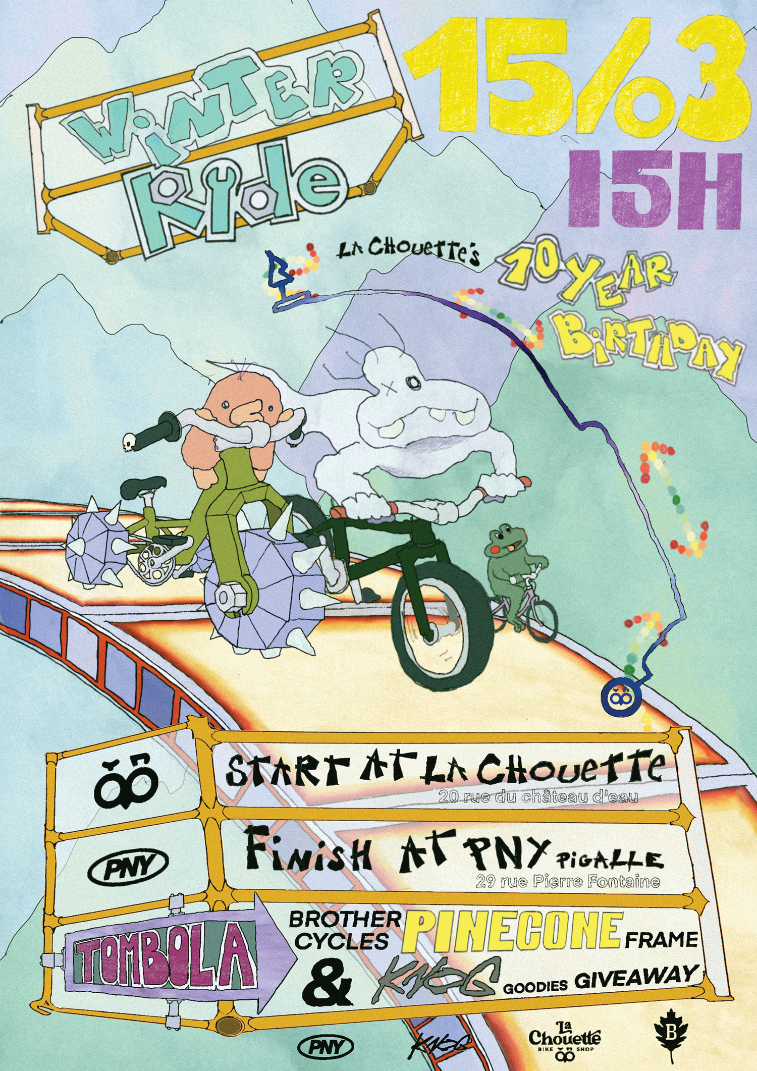 If you're in Paris on March 15th, come along on our birthday winter ride! We're starting the ride at the shop at 15h, and we'll finish with some beers and burgers at PNY!!